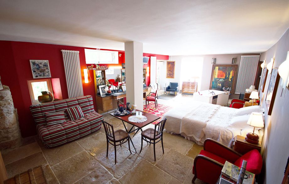 Deux lits de 90 qui réunis donnent un couchage de 180. Possibilité d’un lit d’appoint pour deux personnes. Climatisation, TV , Wifi. Accès indépendant.
